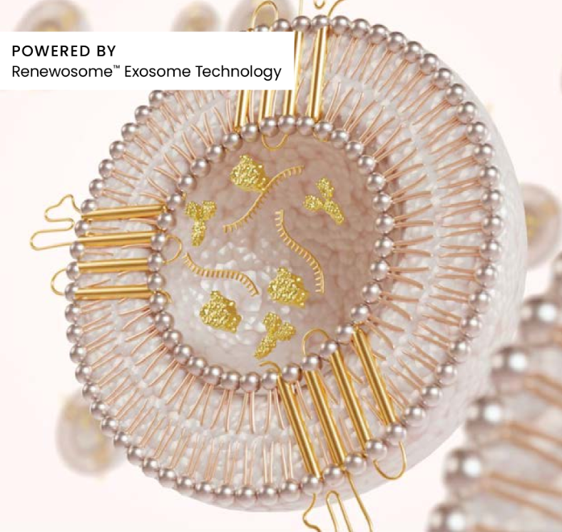 Proprietary Renewosome™ technology is at the cutting edge of beauty and science, harnessing platelet-derived exosomes in a shelf-stable serum designed to regenerate the appearance of the skin. Exosomes play a pivotal role in this process, acting as the primary vehicle for the renewal of the skin's appearance. The exosomes in Renewosome™ technology are derived from the body's natural first responders to the site of need - platelets.
