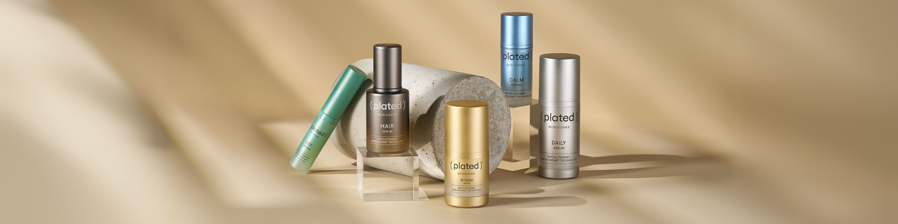 ( plated )™ Skin Science was founded by world-renowned physician-scientists who devoted over 20 years of research in state-of-the-art laboratories to uncover the renewing power of platelets. Their scientific discovery led to the development of the proprietary Renewosome™ technology that makes the ( plated )™ line completely shelf stable. Each full-size bottle of ( plated )™ is packed with 1+ trillion exosomes and is clinically proven to reduce the signs of aging and enhance the skin's overall appearance and texture.